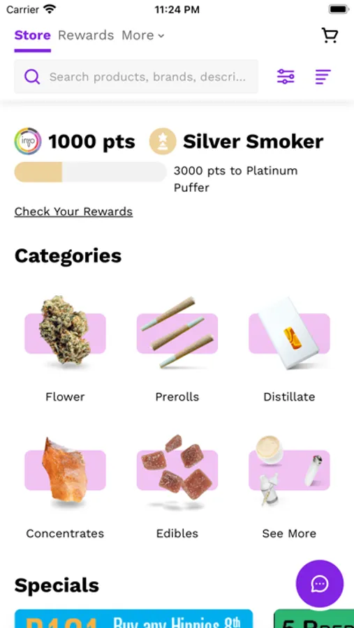 - Merch: Apparel, accessories, bongs, filters, papers, lighters, grinders