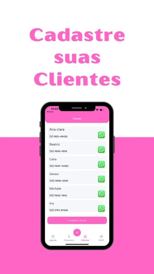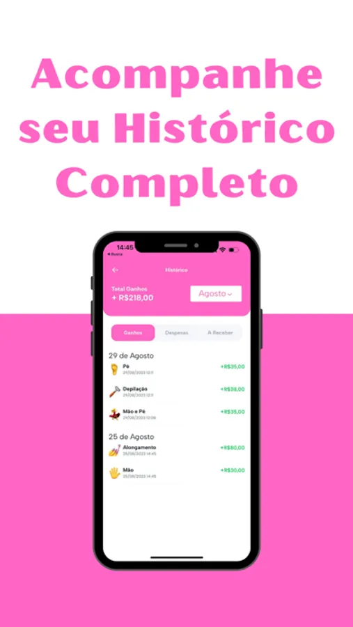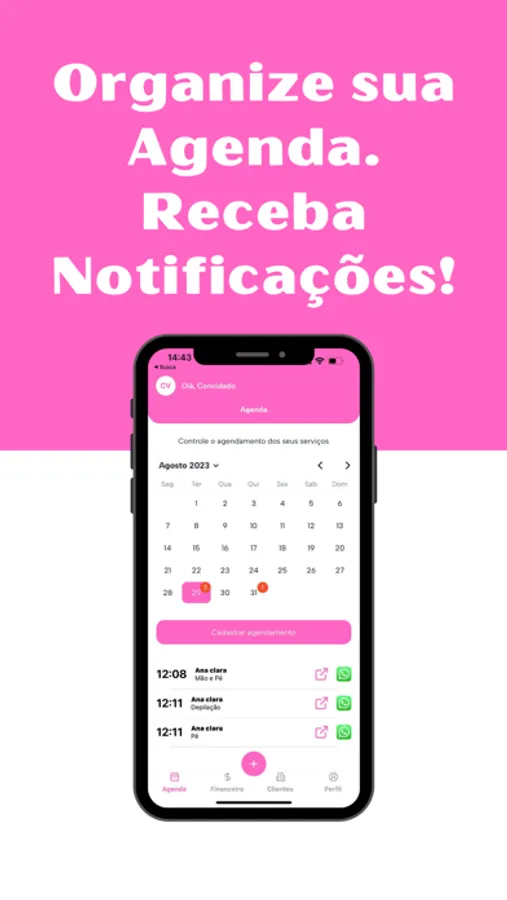 Uma das principais características do aplicativo é o "Agendamento", que permite visualizar e gerenciar sua agenda de compromissos. Você poderá registrar os horários de atendimento, datas e serviços agendados, garantindo que sua jornada seja organizada, evitando conflitos. Além disso, você receberá Notificações de suas próximas agendas, para não perder nada!