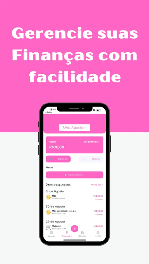 Com uma interface amigável, o aplicativo "Agenda Manicure" concentra-se em proporcionar uma experiência otimizada para você. Desde o agendamento até o controle financeiro e o estabelecimento de metas, o aplicativo busca ser um parceiro confiável na sua jornada, auxiliando no crescimento dos negócios e na satisfação dos clientes.