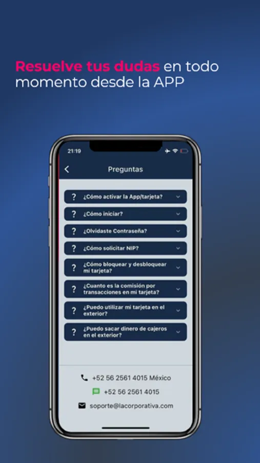 Resuelve tus dudas en todo momento desde la APP o consúltanos a través de nuestros canales de comunicación.
