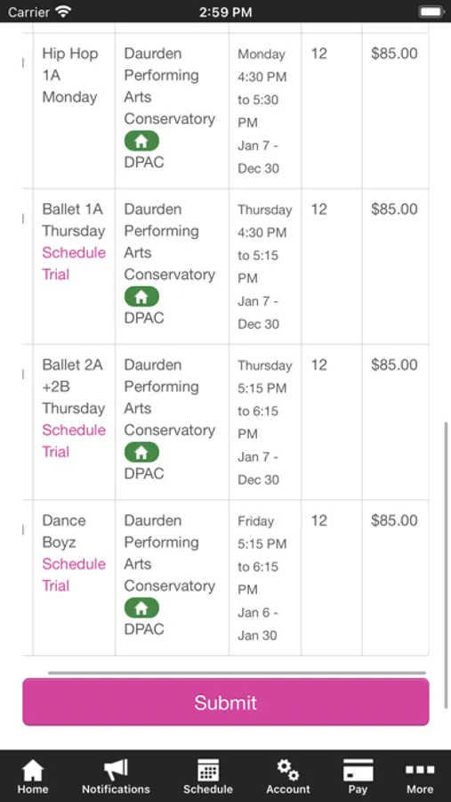Book free trials, register for classes, and stream live sessions with the Daurden Performing Arts Conservatory App.