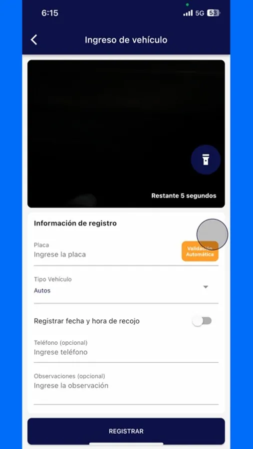 Registrar la entrada de los vehículos escaneando la placa.
