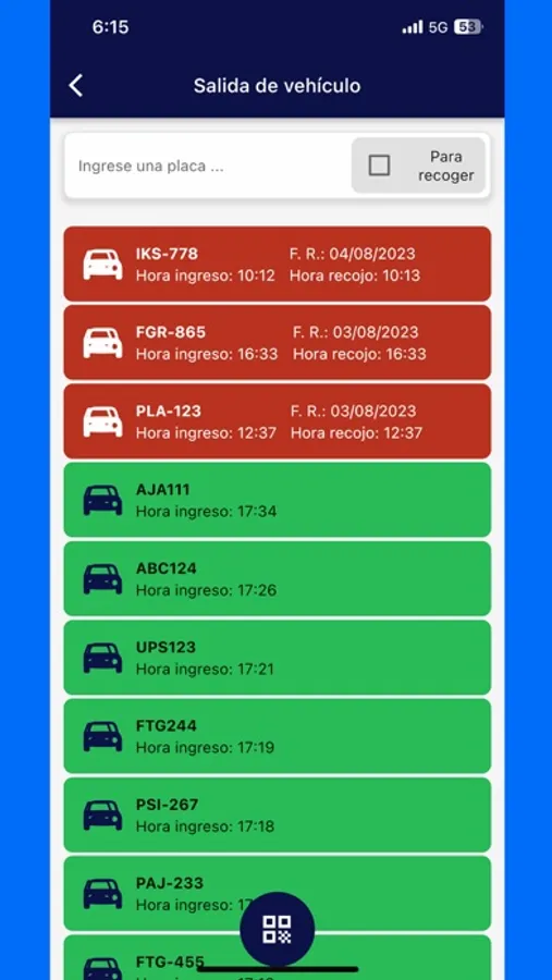 Visualizar los vehículos que entraron, salieron y los que están listos para recoger.