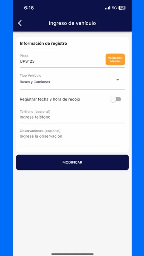 Supervisar y controlar los vehículos añadiendo fecha y hora de recojo.