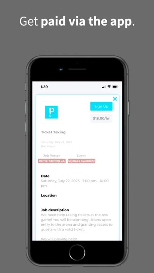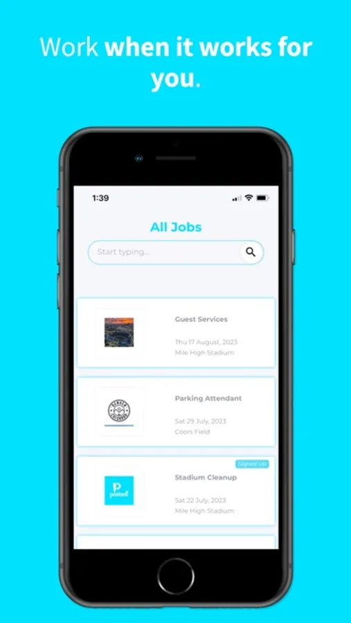Posted! Sports enables you to find flexible gig jobs that fit your schedule. Get paid within days after the shift, all within the app. Sports teams work with staffing partners for game-day operations. We've partnered with those organizations to give you access to gig shifts during the games. When a job is posted, you'll receive a notification and be able to sign up. There's no application or prior experience necessary. Just sign up, show up, and get paid!