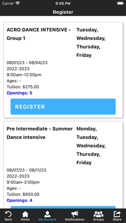 The PDE app allows you to manage your account with ease, register for classes, parties, and special events. You'll also receive important notifications about class changes, closings, registration openings, special announcements, and upcoming events.