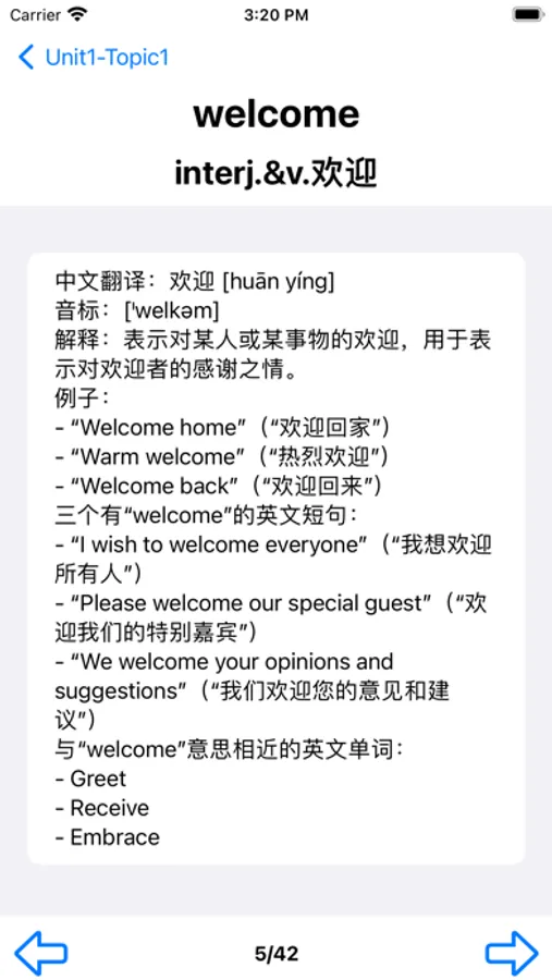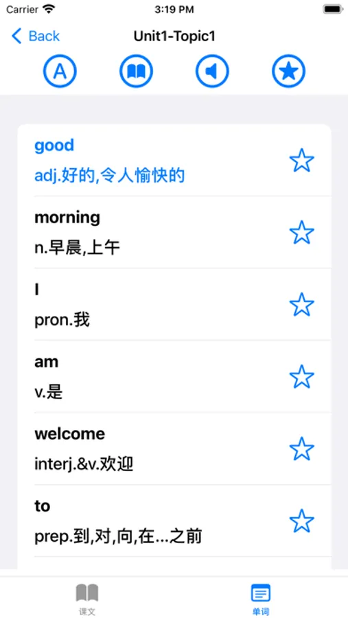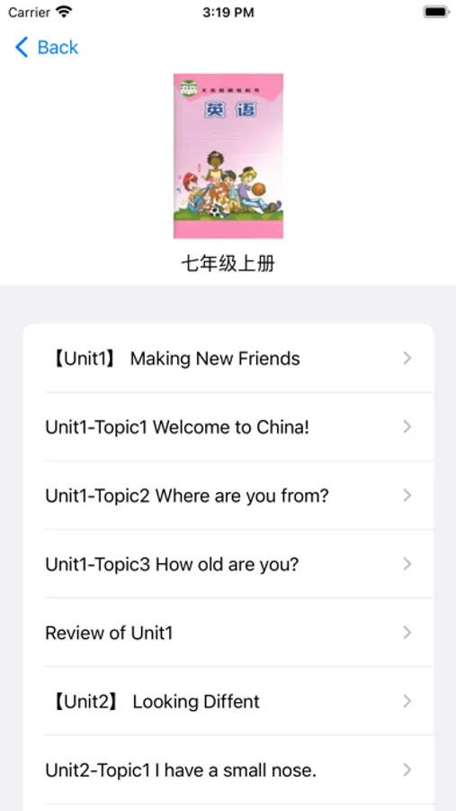 应用中包含仁爱初中英语七年级上册各单元课文句子和单词。