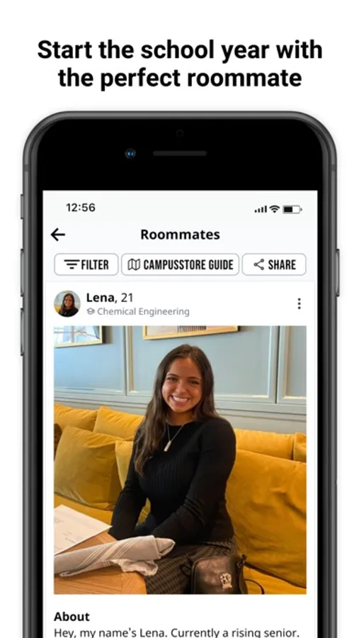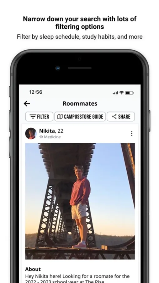 Perhaps you’re not looking to buy or sell anything. On CampusStore, you can also find roommates. Apply filters such as sleep time, hobbies and interests, morning or non-morning person, major, age, on or off-campus seekers, and many more in order to find that perfect roommate.