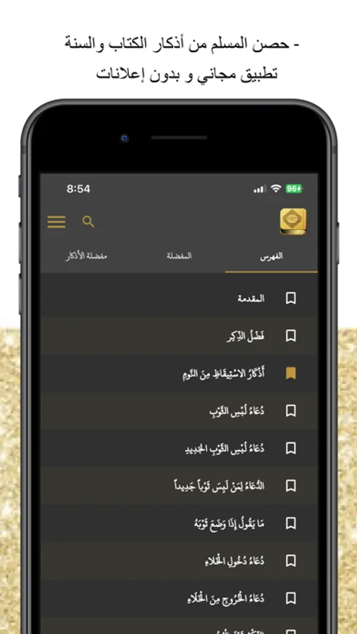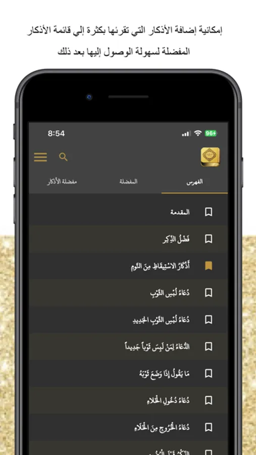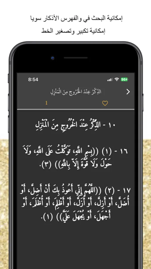 - أمكانية إضافة الأذكار التي تقرئها بكثرة إلي قائمة الأذكار المفضلة لسهولة الوصول إليها بعد ذلك