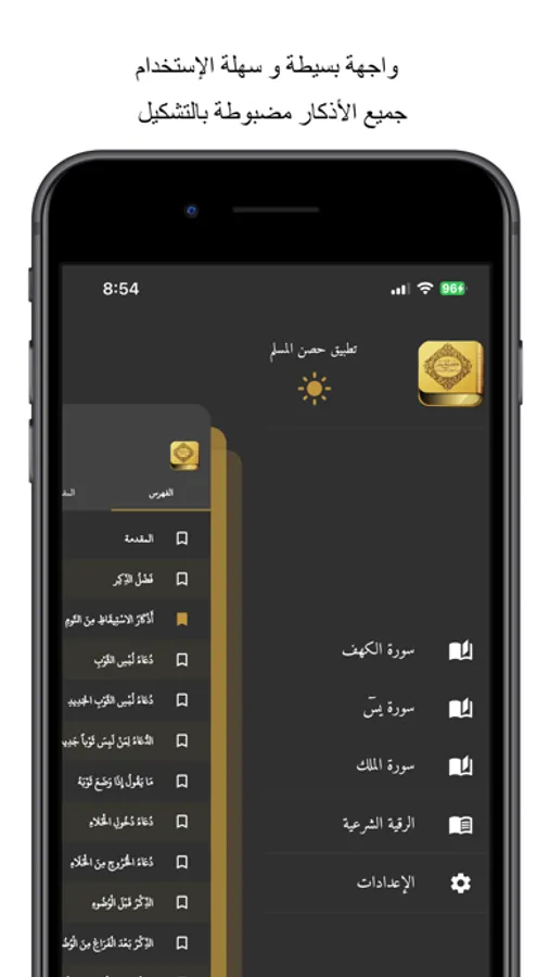 يضم تطبيق حِصن المسلمِ مِن أذكار الكتاب والسُّنة على العديد من الأذكار والأدعية التي لا غني عنها في حياتنا اليومية وفي معاملاتنا مع الناس وذلك بطريقة سهلة وبسيطة.