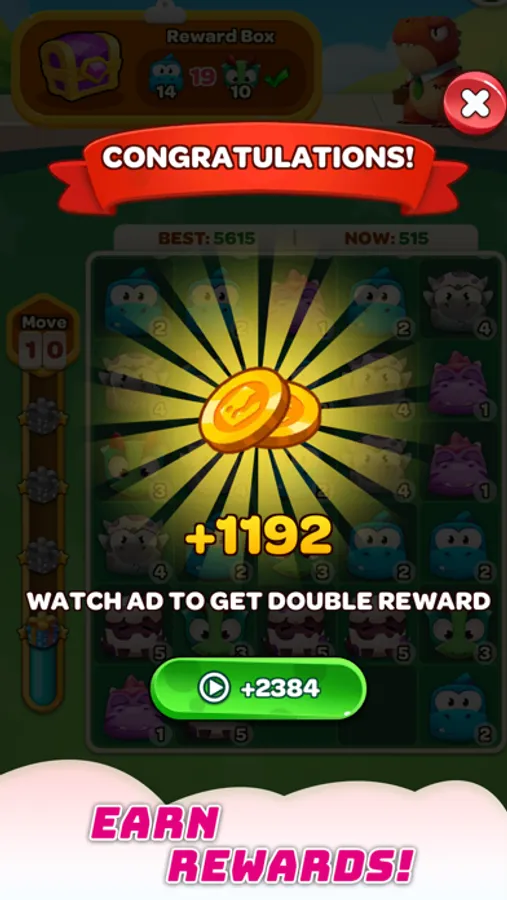 Discover tons of dinosaur breeds as you progress through fun match-3 levels. Strategically plan each merge to unlock rare dinos like the mighty T-Rex! Once you've evolved your cute pets, build a paradise island for your collection. Decorate your dino haven with plants, rocks, treasures and customize it any way you like!