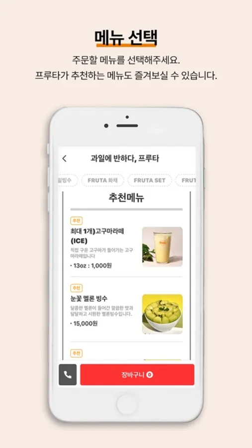 메뉴, 이벤트, 주변 매장 조회 등 프루타의 다양한 정보 확인이 가능하며