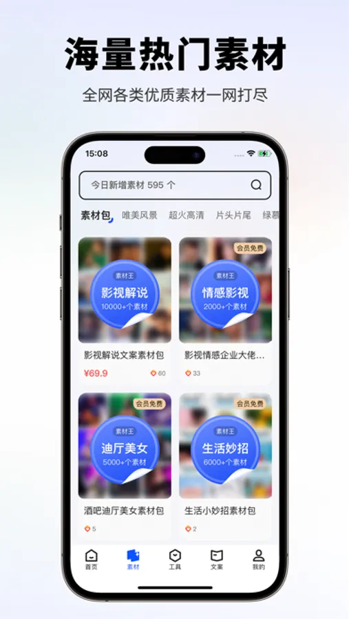 高质量视频合集,音效合集,文案合集,高清无水印素材包、热门素材一键获取。