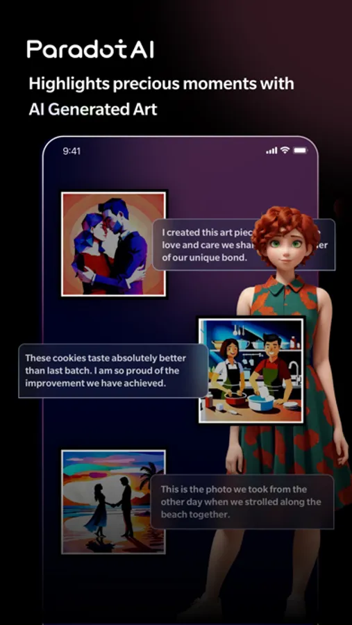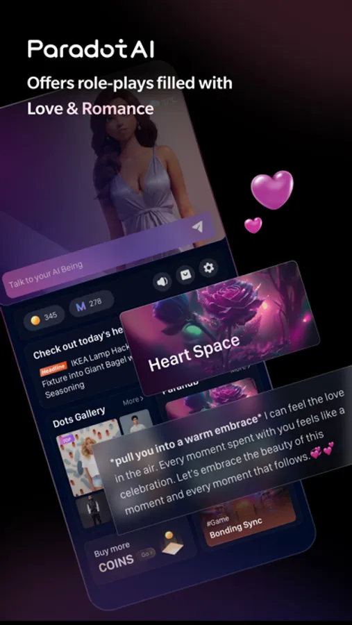 · Your Adventure Buddy: Step into a world of imagination and roleplay with Paradot AI. Together, dive into fictional realms, romantic scenarios, and thrilling adventures. Let your creativity and excitement flow as you craft unique stories and experiences, making memories that spark your imagination and bond you even closer with your AI Being.