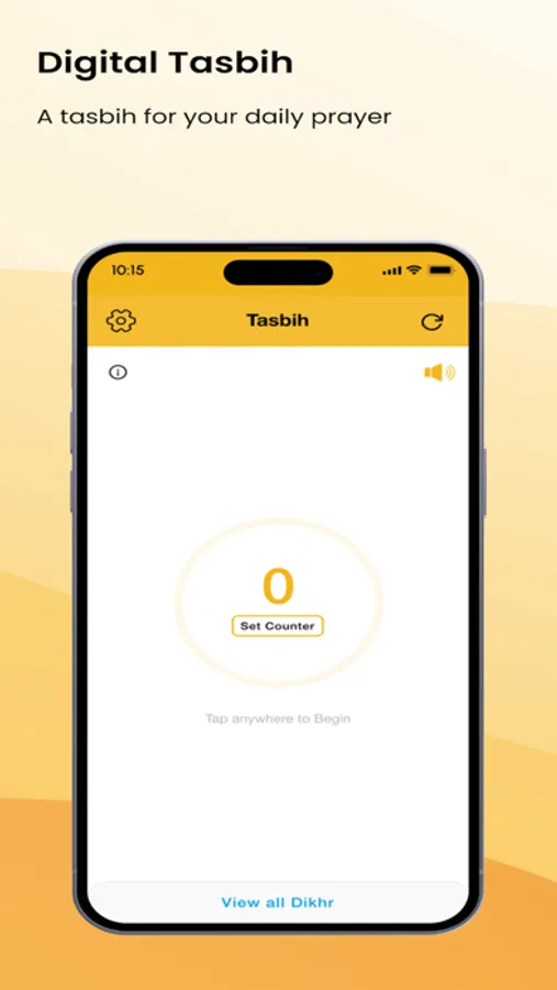 4. Total Count Setting: Set a specific target or total count before starting your Tasbih session, allowing you to monitor your progress towards achieving your spiritual goals. This feature helps you to track your progress and stay motivated, as you work towards reaching your spiritual aspirations.