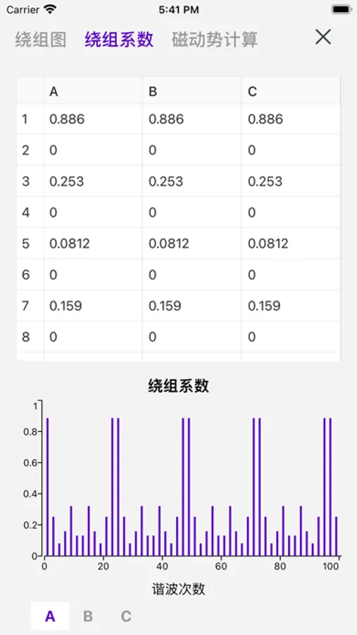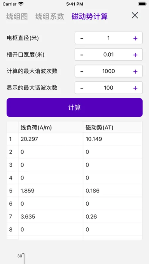 绕组计算器是一个用于计算任意排布的交流绕组的绕组系数, 谐波分量, 磁动势分布等,