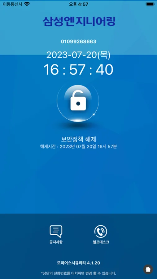 삼성성엔지니어링 평택 고덕현장 모바일보안 MDM Screenshots