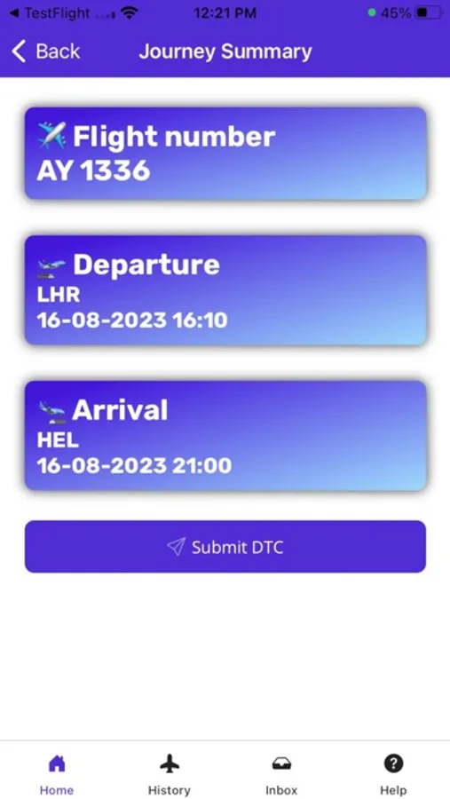 3. Lähetä tiedot sovelluksesta Rajavartiolaitokselle 36-4 tuntia ennen lentoasi. Käytä DTC:tä rajtarkastuksessa Helsinki-Vantaan lentoasemalla. Ota passisi mukaan matkalle.