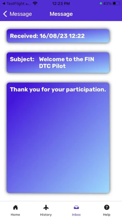 RAJATARKASTUS JONOTTAMATTA: FIN DTC Pilot -sovelluksen avulla testaat vapaaehtoisesti digitaalista matkustusasiakirjaa DTC:tä (Digital Travel Credentials) Finnairin Ison-Britannian-lennoilla. Jotta voit osallistua, sinun on oltava Suomen kansalainen.