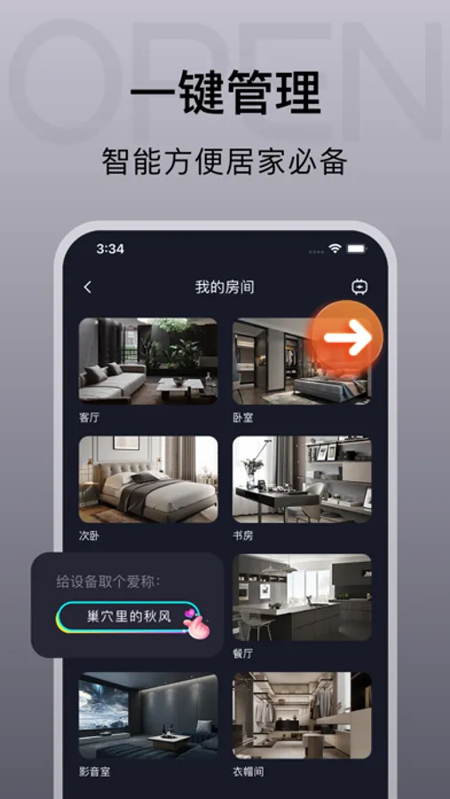 分区管理:把您的家电按区域、种类自定义管理,清晰管理。