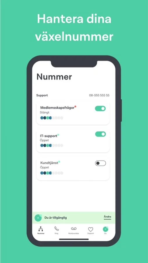* Sätt dig som tillgänglig eller inte tillgänglig för dina växelnummer (Växel Plusanvändare)