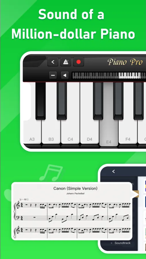 Note: The contents of this product introduction are for illustrative purposes only and may not reflect the actual features of "Piano Pro."