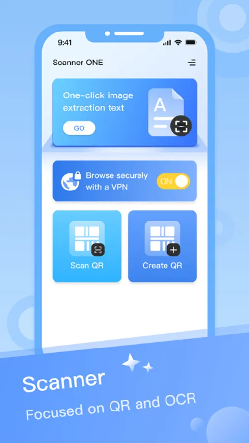 Through our application, you can easily scan various types of QR codes, including website address, contact information, text, etc., making it easy to obtain relevant information without the need for manual input. At the same time, we also provide VPN functionality to ensure your security and privacy when using the internet. Through the built-in VPN service, you can securely access the internet and avoid personal information theft.