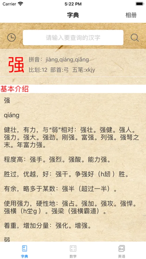 这是一个简单的辅助学习小工具,适合小学生使用,带有中文字典功能,可以查询生僻字,可以计算加减乘除括号的数学公式,还支持每日英语功能,所有查询均带有历史记录功能。支持相机扫描生僻字跟数学公式功能,扫描结果可编辑