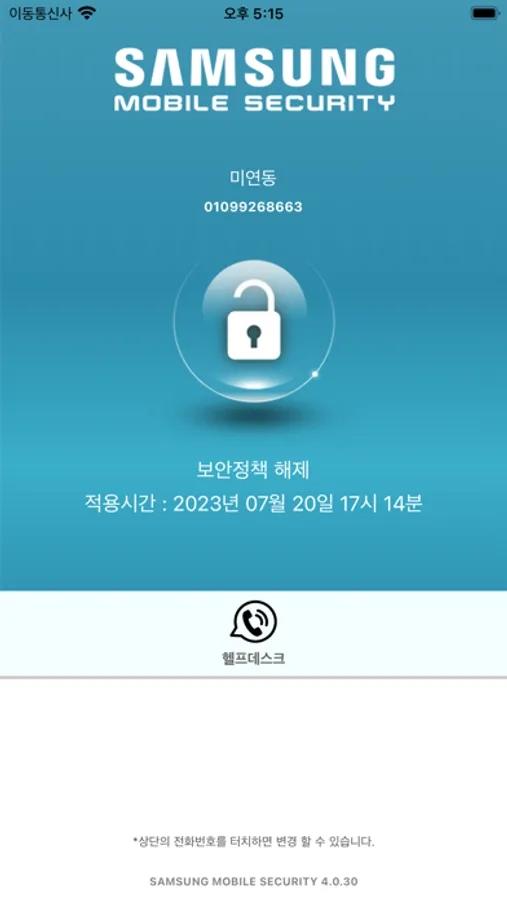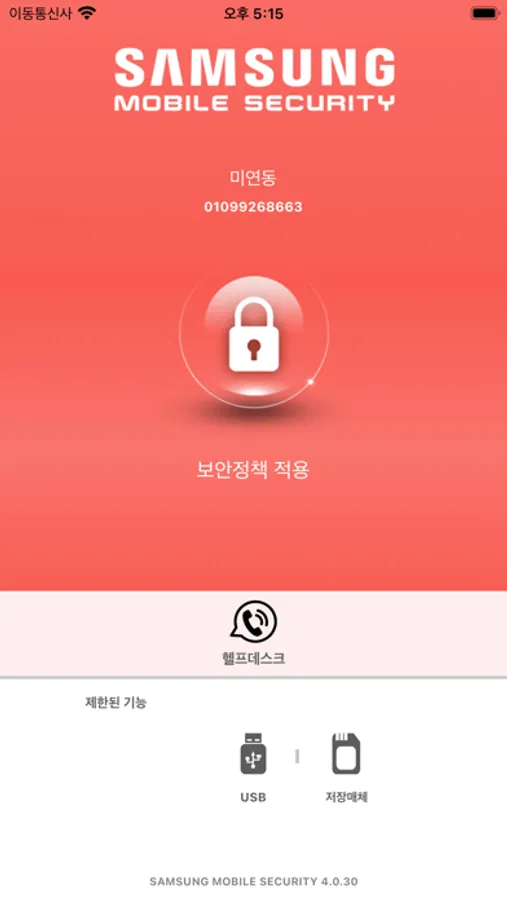 삼성전자 R&D 연구소 모바일보안(MDM)앱입니다.