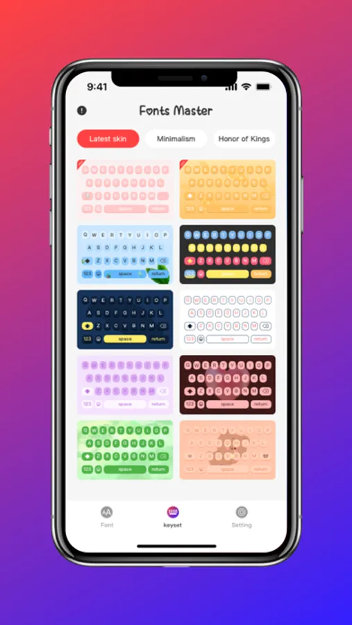 Speaking of typing, who said typing is boring? Not with Colorful Keyboard! Set any keyboard design to brighten up your typing experience.