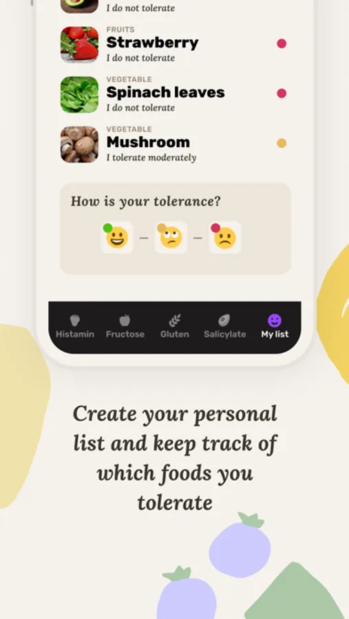 - Create your personal list and keep track of which foods you tolerate