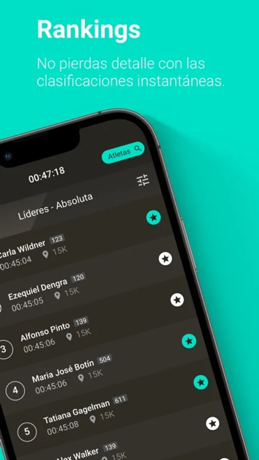 Además, podrás ver de forma rápida cualquier clasificación al instante: por categorías, los primeros corredores por tramo y el último punto alcanzado de los participantes a los que sigas.