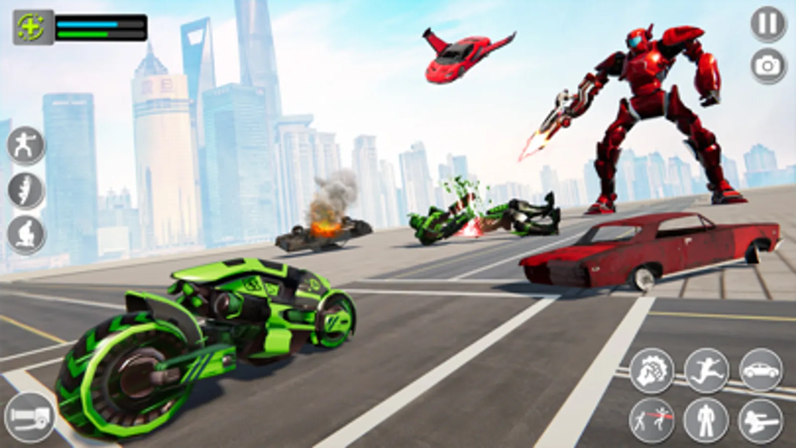 Use unique abilities and weapons to destroy your opponents in the bike robot games 2023. Enjoy challenging and addictive flying robot bike games 3D that are sure to test your skills. With its fast-paced action and intense battles, the motorcycle robot transform games that you will not be able to put down. If you are looking for robot bike transform 3D games that are fun, challenging, and addictive, then this is for you. Download the flying bike robot fighting games today and start fighting with smooth, easy, and simple controls. Open-world city environment, stunning visuals, and realistic animation of the moto robot transforming games. Interesting levels and extreme fighting to enjoy in transforming bike robot transformation games.