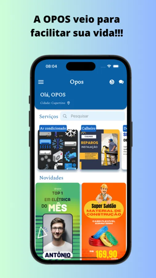 A OPOS é uma plataforma de cadastro de profissionais das areas de manutenção residencial, nela voce encontrará os profissionais que atuam em sua região.
