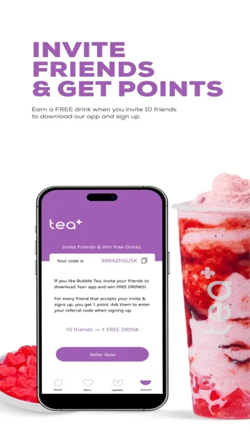 Earn a FREE drink when you invite 10 friends to download our app and sign up.