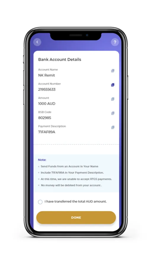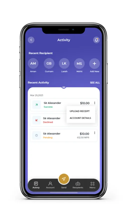 This app aim to make money transfer process effortless and super fast. We maintain complete transparency to give you better control over the transactions and our thorough verification processes make sure the money is safe and reaches the right recipients.