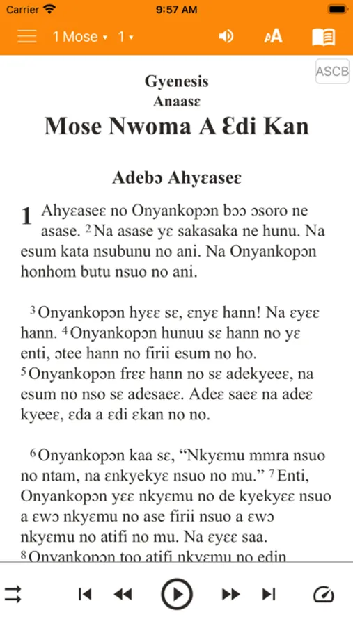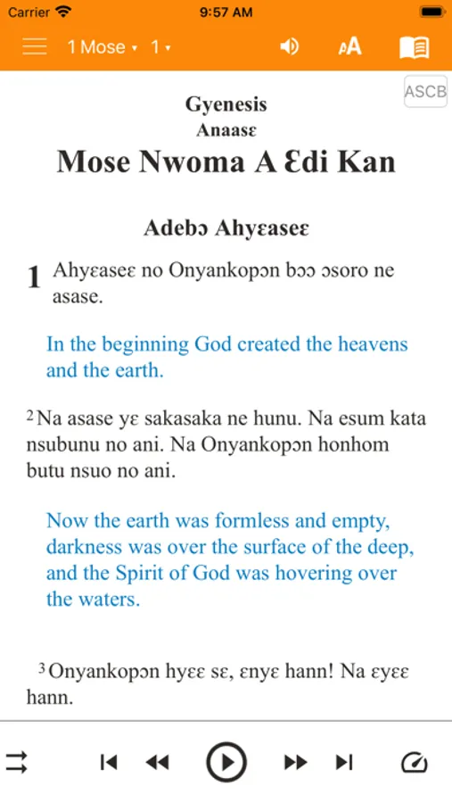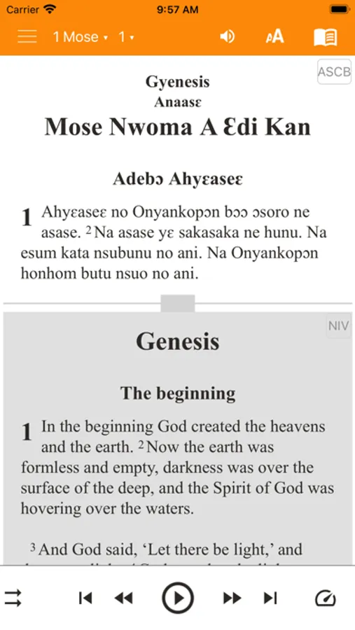 Biblica New International Version in English that can be read side-by-side or verse-by-verse with the Asante Twi Translation.