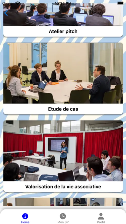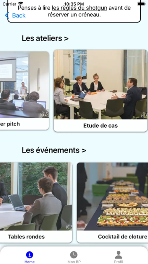 - BePrepared : Forme toi aux épreuves de recrutement que tu vas rencontrer dans les années qui arrivent. L'application va te permettre de réserver des des ateliers ou tu pourra simuler des entretiens, corriger ton CV, pitcher, discuter de ton projet professionnel mais aussi de faire des études de cas avec des RH d'entreprises partenaires. Pleins d’autres activités te seront proposées, dont des tables rondes avec CentraleSupélec Alumni.