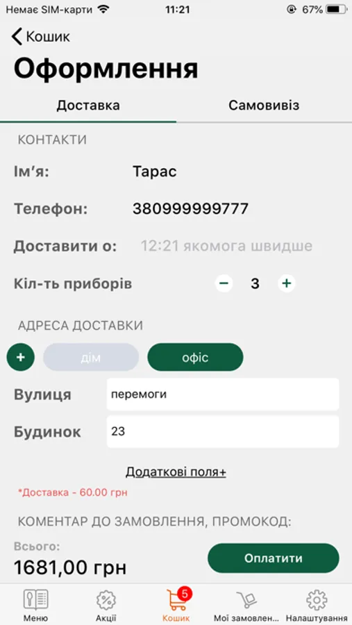 • встановити бажаний час доставки замовлення за вказаною адресою;