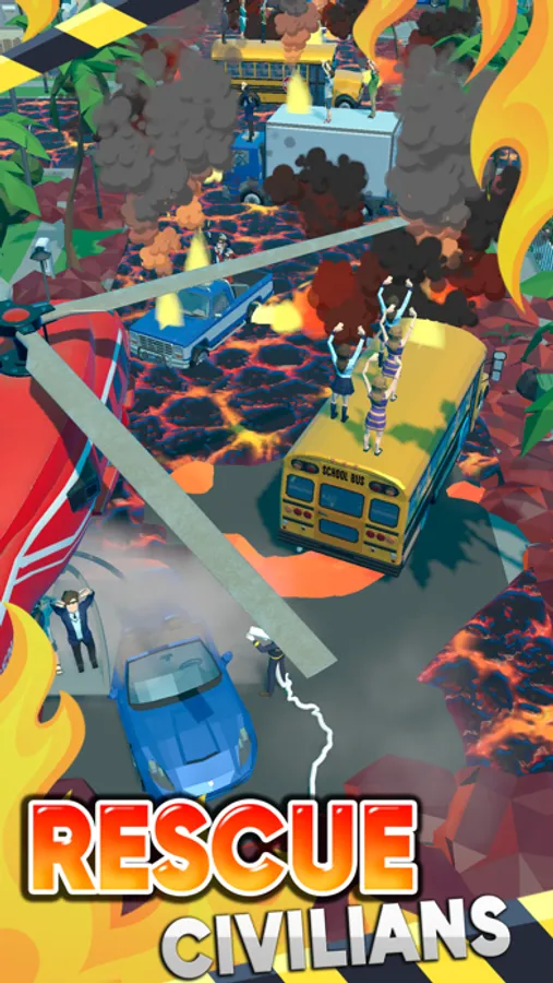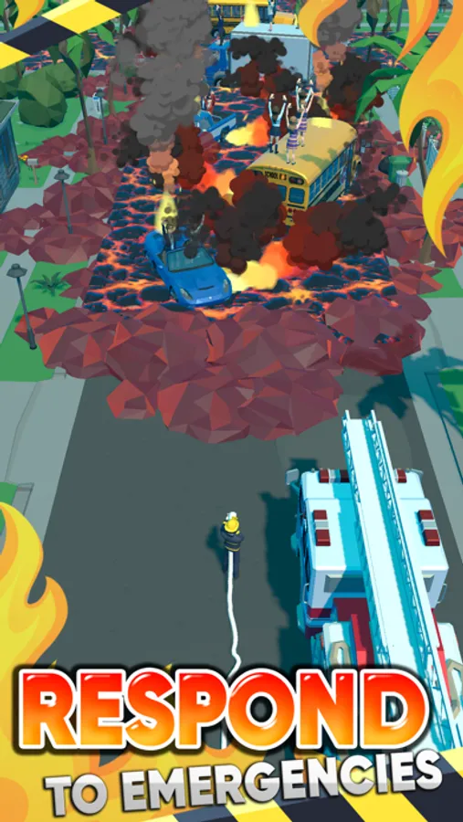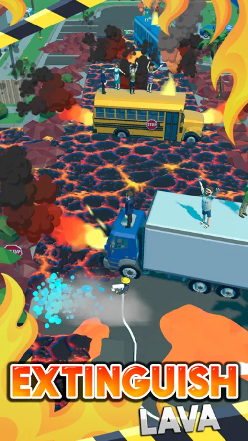 Extinguish lava, rescue people and avoid casualties. Save the city!