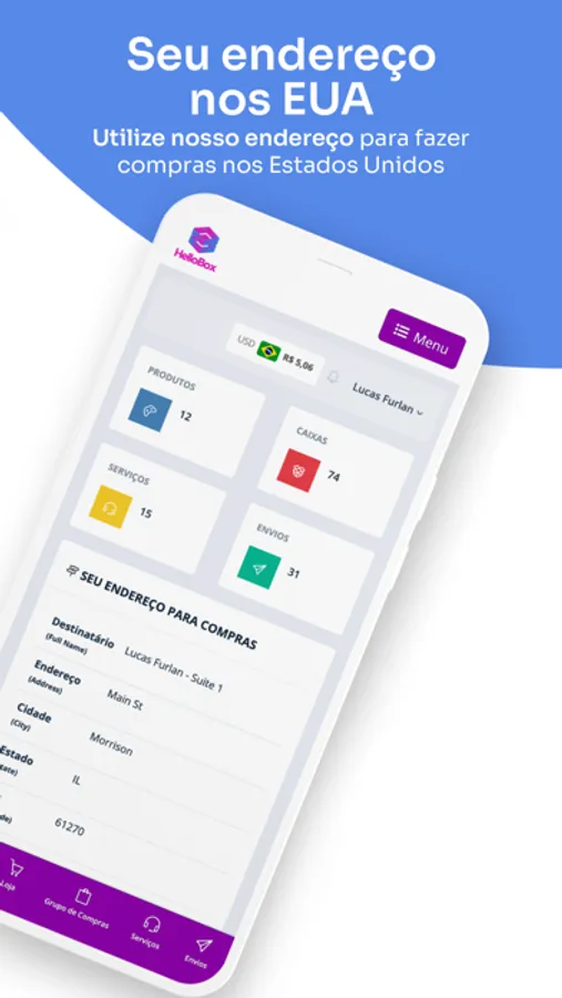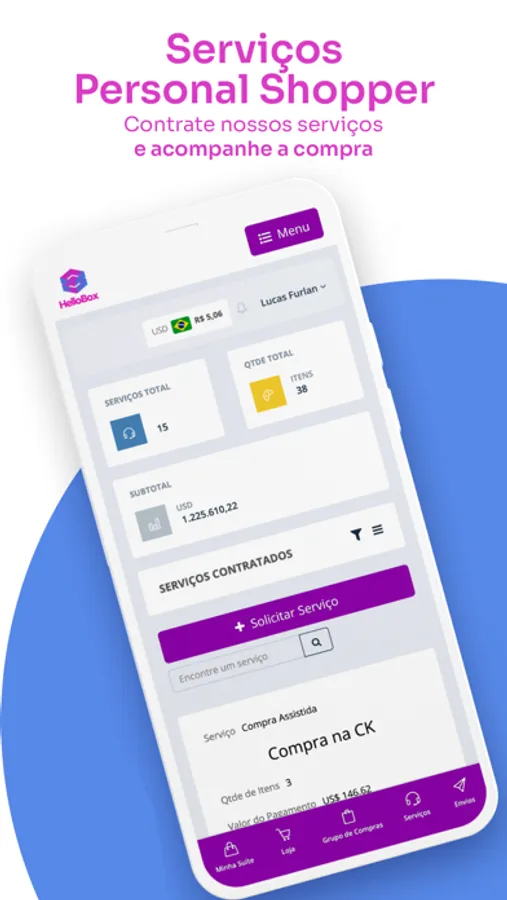 A Hello Box é um aplicativo projetado para tornar o gerenciamento de compras muito mais fácil, proporcionando uma variedade de serviços convenientes. Esses serviços incluem um assistente de compras personalizado, uma comunidade de compras em grupo e uma loja virtual integrada. Sua interface de usuário é intuitiva e amigável, o que permite que os usuários solicitem os serviços disponíveis com facilidade e rastreiem o envio de suas encomendas de forma simples e descomplicada.