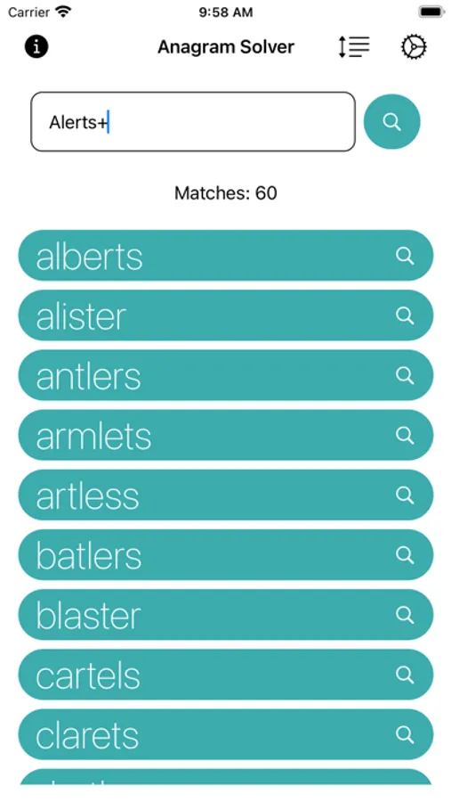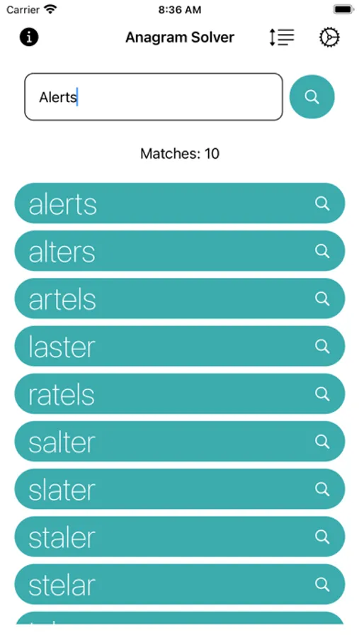By enabling the sub-anagrams setting, you can look for words within the letters you have entered, this can be useful when playing scrabble or following along with countdown.