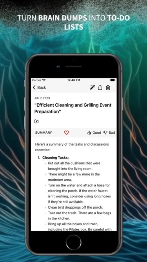 Easy Organization: From to-dos to big ideas, Wave turns your spoken words into organized lists and notes.