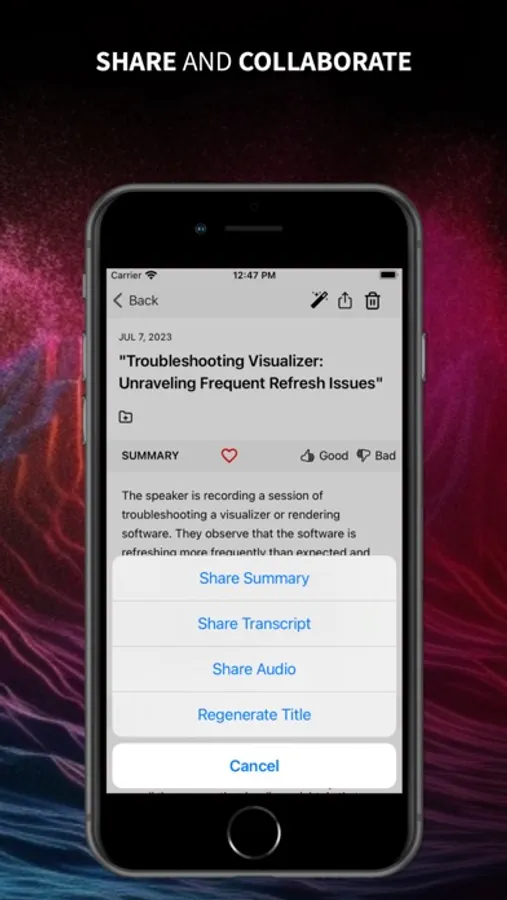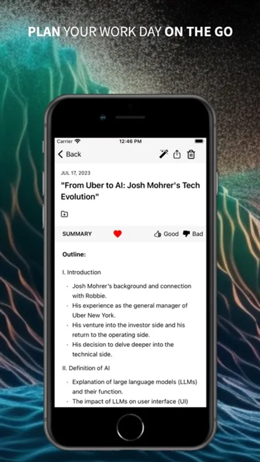 Intelligent Summaries: Don't just record—understand. Our cutting-edge AI distills your conversations into clear, concise summaries, making it easier than ever to get to the heart of the matter.