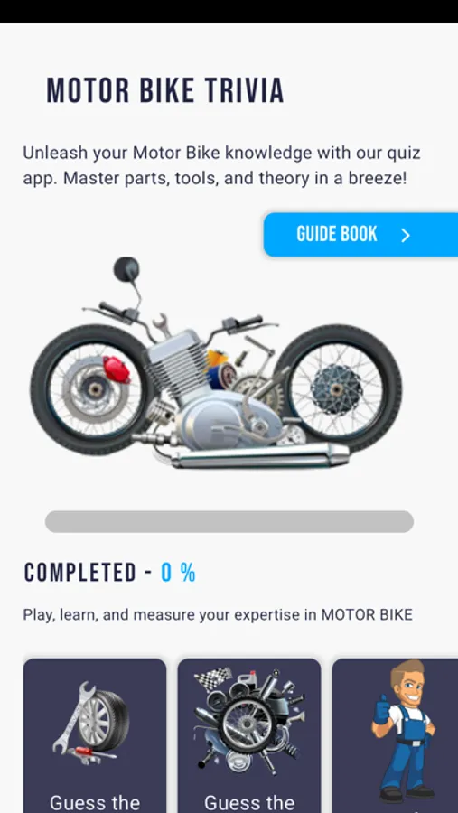 Become the ultimate motorcycle guru and impress your friends with your in-depth knowledge of bikes. Whether you're a passionate bike enthusiast or a dedicated mechanic, BikeQuiz is the perfect app to sharpen your skills and have a blast while doing it.