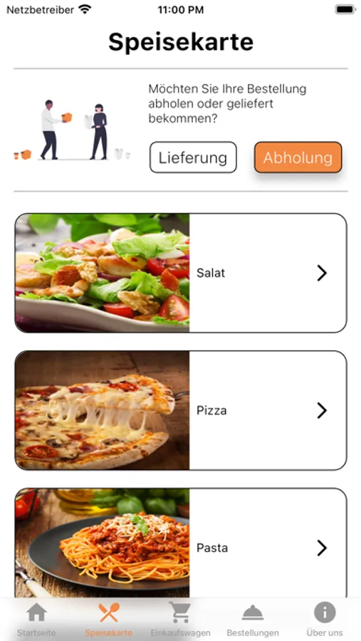 Wir liefern ofenfrische Pizza, feine Pasta, frische Salate und Getränke.