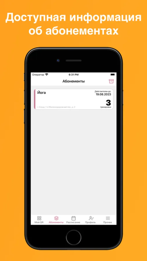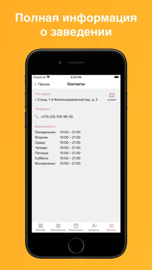 Получайте информацию о своих занятиях и абонементах, а также полную информацию о заведении.