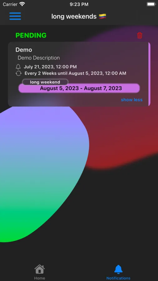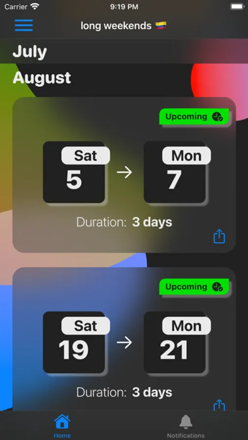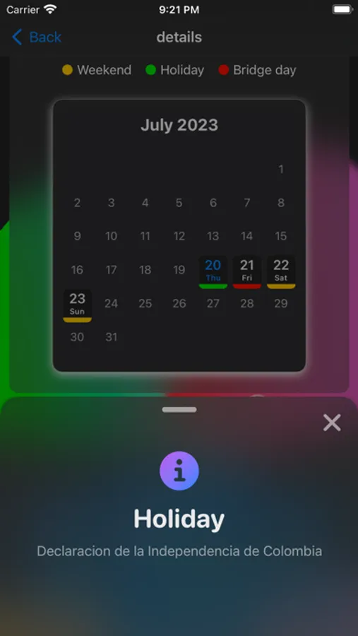 This app was designed to you informed about all the long weekends in a specific country for a given year. You can easily access information on upcoming extended weekends, allowing you to plan your activities and vacations more effectively.