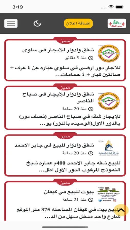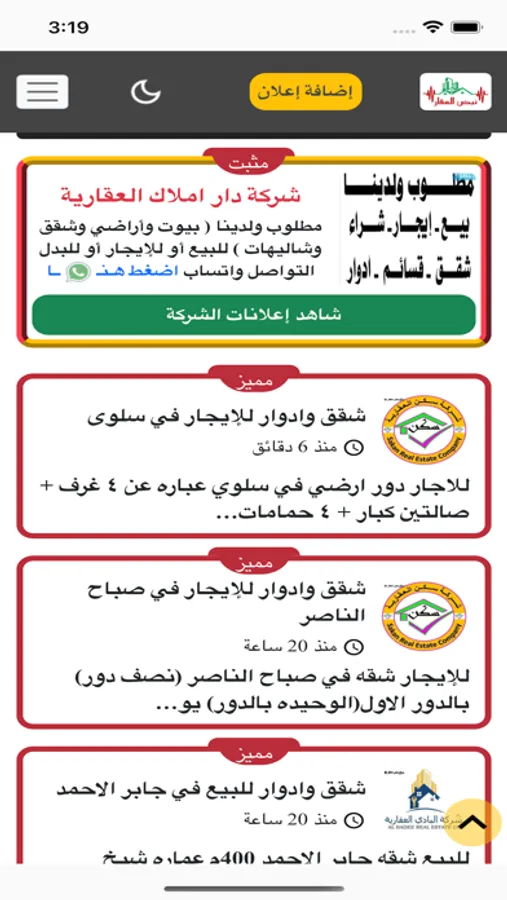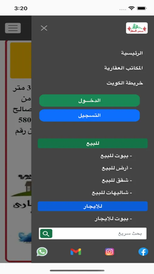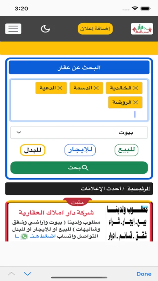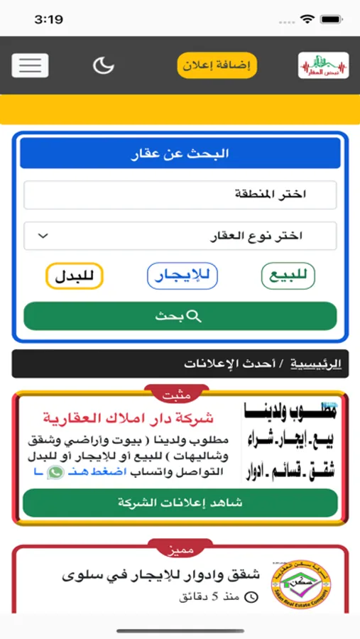 وبالتطبيق أكثر من بحث: بحث سريع بكتابة جزء عم تبحث عنه وهناك البحث الدقيق الشامل وذلك بتحديد المنطقة ونوع العقار والغرض من العقار.