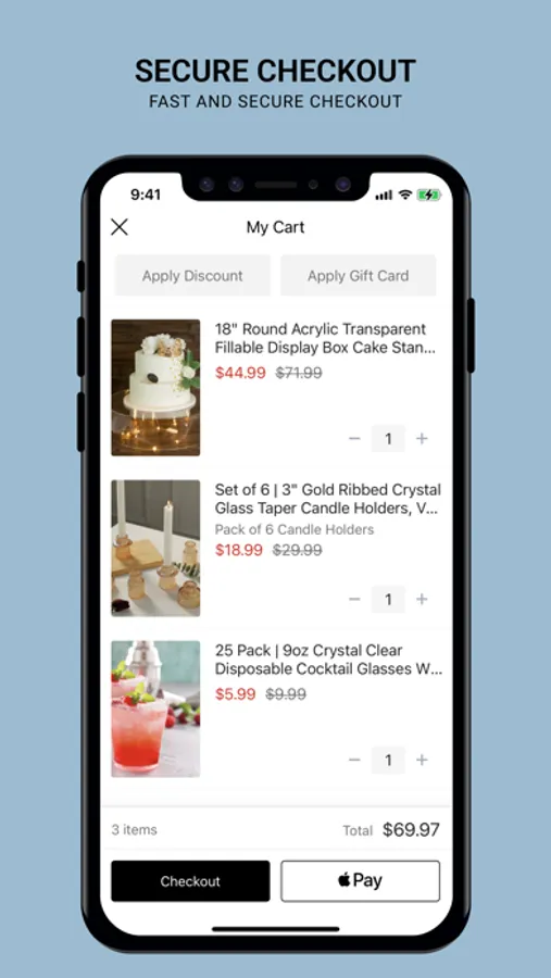 Tap, swipe, shop and secure your new products in an instant with our super easy checkout.